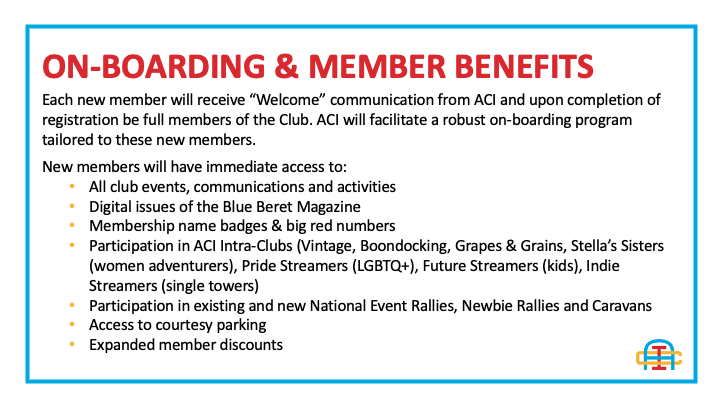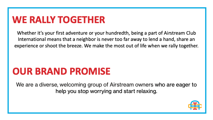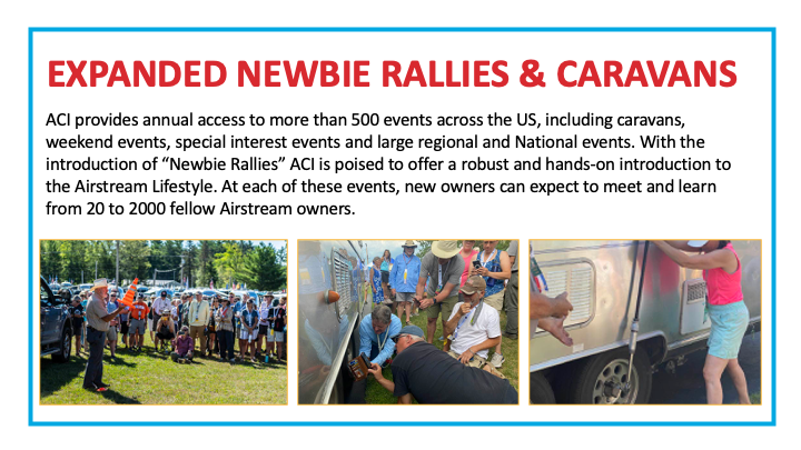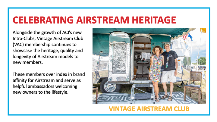 One key initiative of our Club Strategic Plan developed in our Strategy Session last year was to tighten the relationship between our Club and the Airstream dealers. Many of the dealers already know about our Club and the benefit we provide to their customers. Still, unfortunately, many do not know about us, or do not know about the vitality we exhibit these days and how our demographics and initiatives now closely match what they see in their customers.