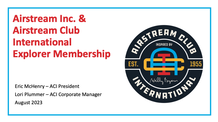 To help launch the new Airstream Explorer Membership Program, we were invited to attend the Worldwide Dealer Meeting in Columbus, Ohio in August. Lori Plummer, our Corporate Manager, and I presented and discussed our Club (and membership benefits) to the entire Airstream senior dealer leadership (owners, general managers, etc.). Lots of great connections and energy from the dealers to partner with us to put on newbie rallies, maintenance rallies, and more engagement with our Regions and Local Clubs. More to come through your Region Presidents, but it’s pretty exciting. This is great progress and continues to open the door to shared benefits with Airstream, Inc.