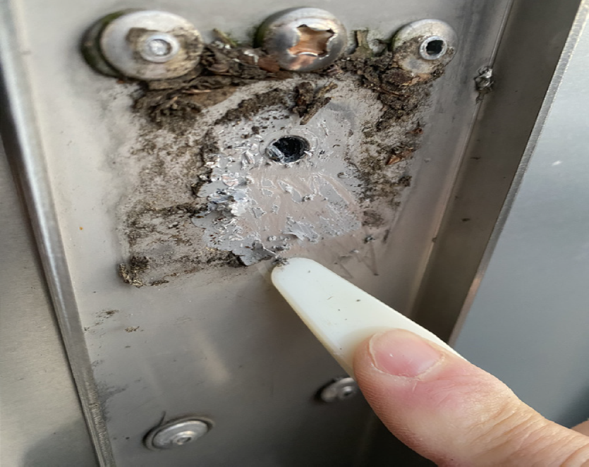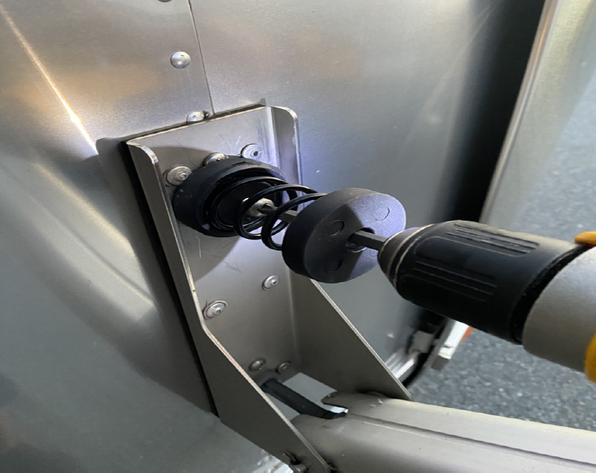 Apply sealant to the hole to stop any chance of water intrusion. Now you are ready to install your new Zip Dee “Push Off Spring.”