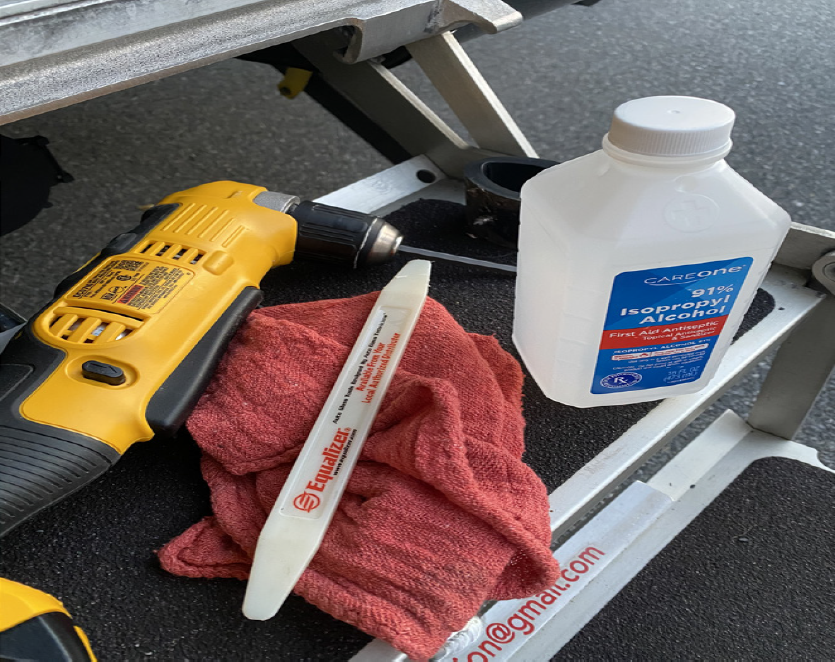 Next, clean the aluminum thoroughly. Carefully use a bone tool, some rubbing alcohol, and a soft towel. See images below.